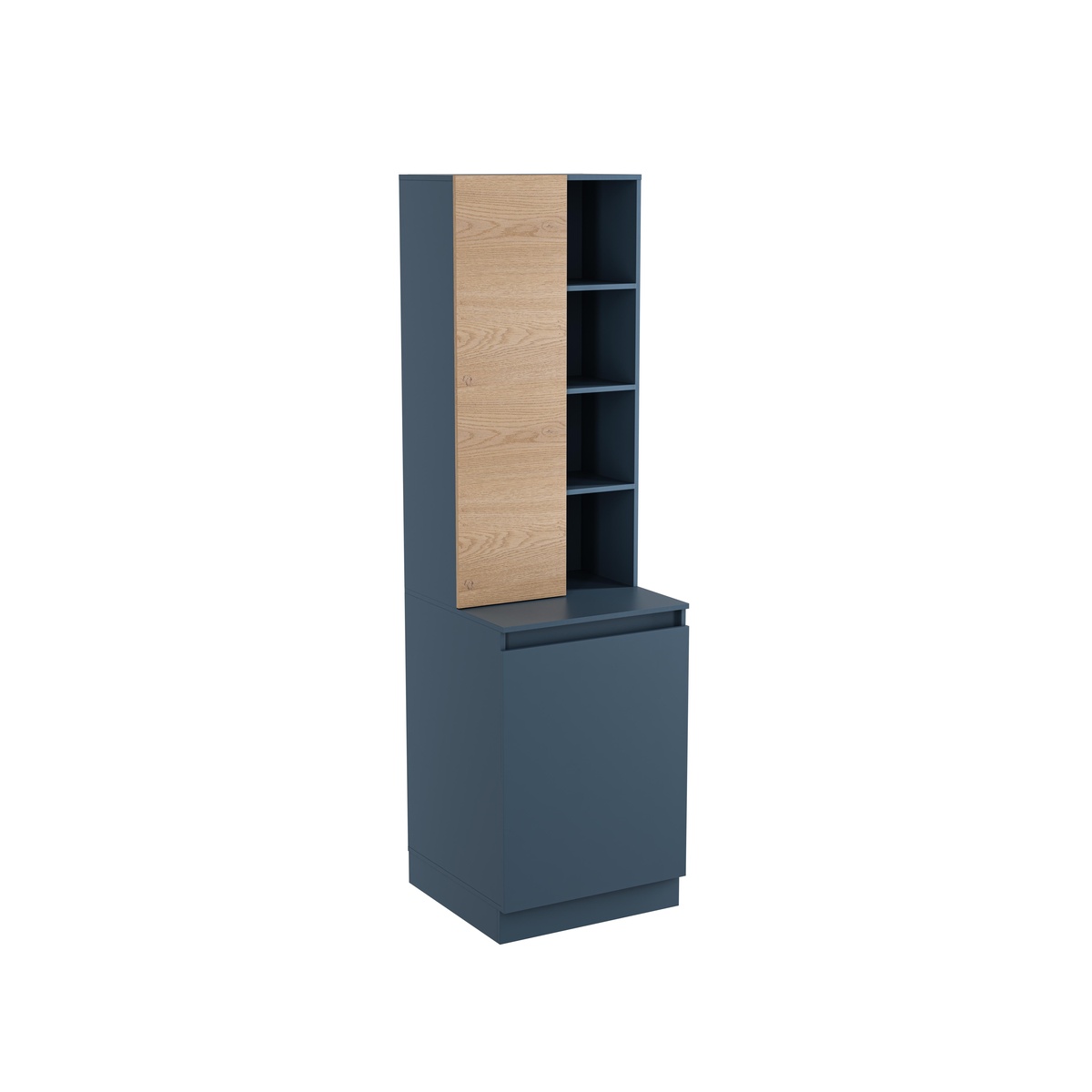 La Alacena Provenza Plus en azul oscuro con estantes abiertos y panel decorativo de madera clara es perfecta para cualquier espacio del hogar. ¡Añade esta elegante alacena a tu hogar hoy mismo!