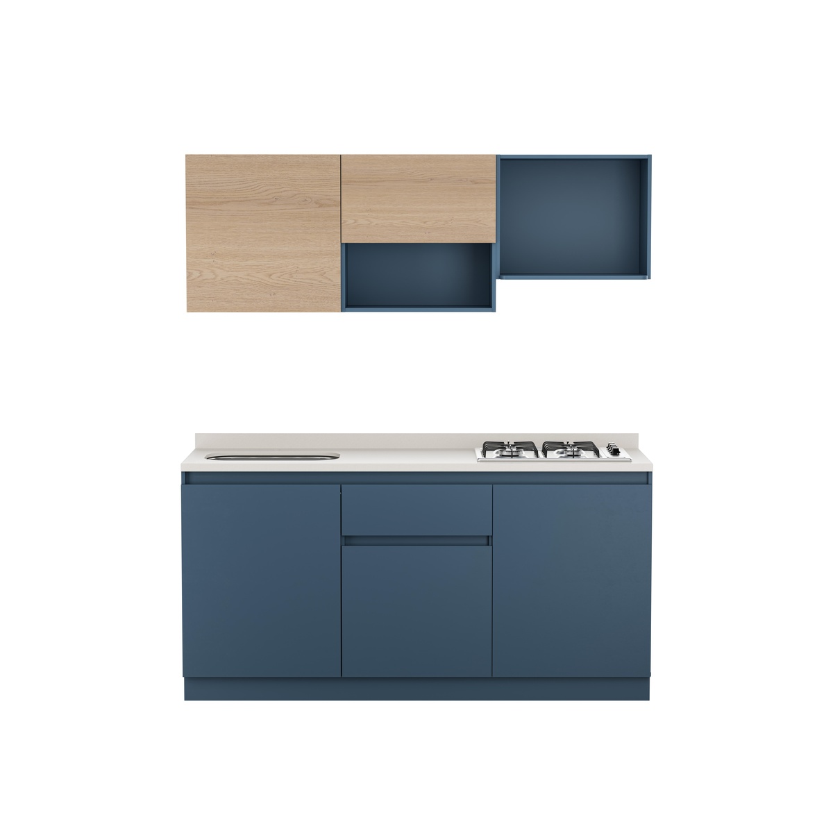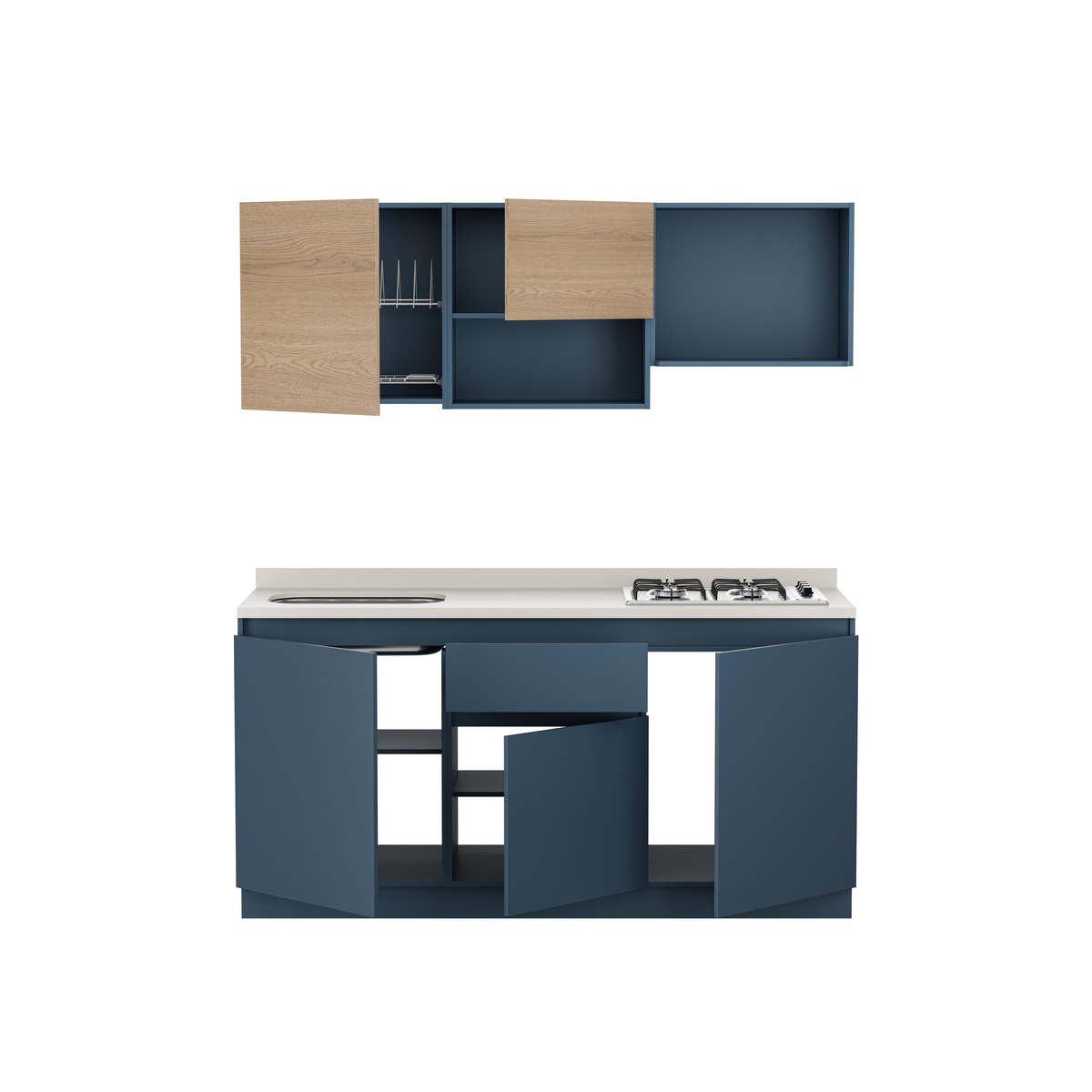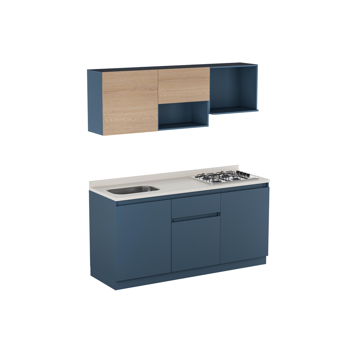 Descubre la Cocina Provenza Plus que combina a la perfección estilo y funcionalidad. Con un diseño contemporáneo en azul y madera clara, este conjunto incluye gabinetes superiores e inferiores, una encimera blanca con estufa a gas de cuatro quemadores y un fregadero integrado. Ideal para cualquier cocina moderna, este conjunto no solo optimiza el espacio, sino que también añade un toque de elegancia. ¡Renueva tu cocina y disfruta de un espacio único y funcional!