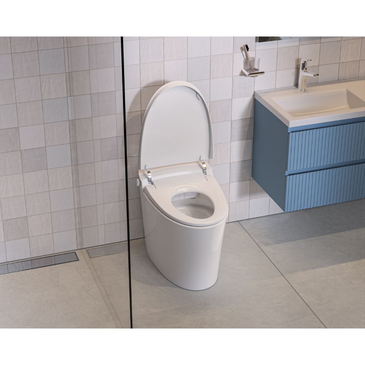 El asiento del sanitario Nyren Plus es mas que solo confort, te ofrece la opción de precalentar la superficie acorde a tu gusto, cuenta con un sensor de contacto que realiza una descarga automática al momento de levantarse del mismo.